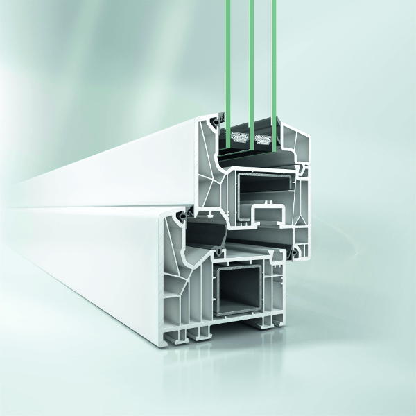 Schüco LivIng (z vmesnim/sredinskim tesnilom – MD) je sodoben 7-komorni PVC okenski sistem z vgradno globino 82 mm, zasnovan za vrhunsko energijsko učinkovitost. Dodatno sredinsko tesnilo bistveno izboljša toplotno izolacijo, zrakotesnost in zaščito pred vlago, sistem pa lahko dosega standarde pasivne gradnje. Odlikujejo ga odlična zvočna izolacija, visoka protivlomna zaščita ter ozke vidne širine profilov za sodoben videz. Primeren je za energijsko varčne novogradnje in zahtevne prenove. Profili so dobavljivi v različnih barvnih in lesnih dekorjih.
